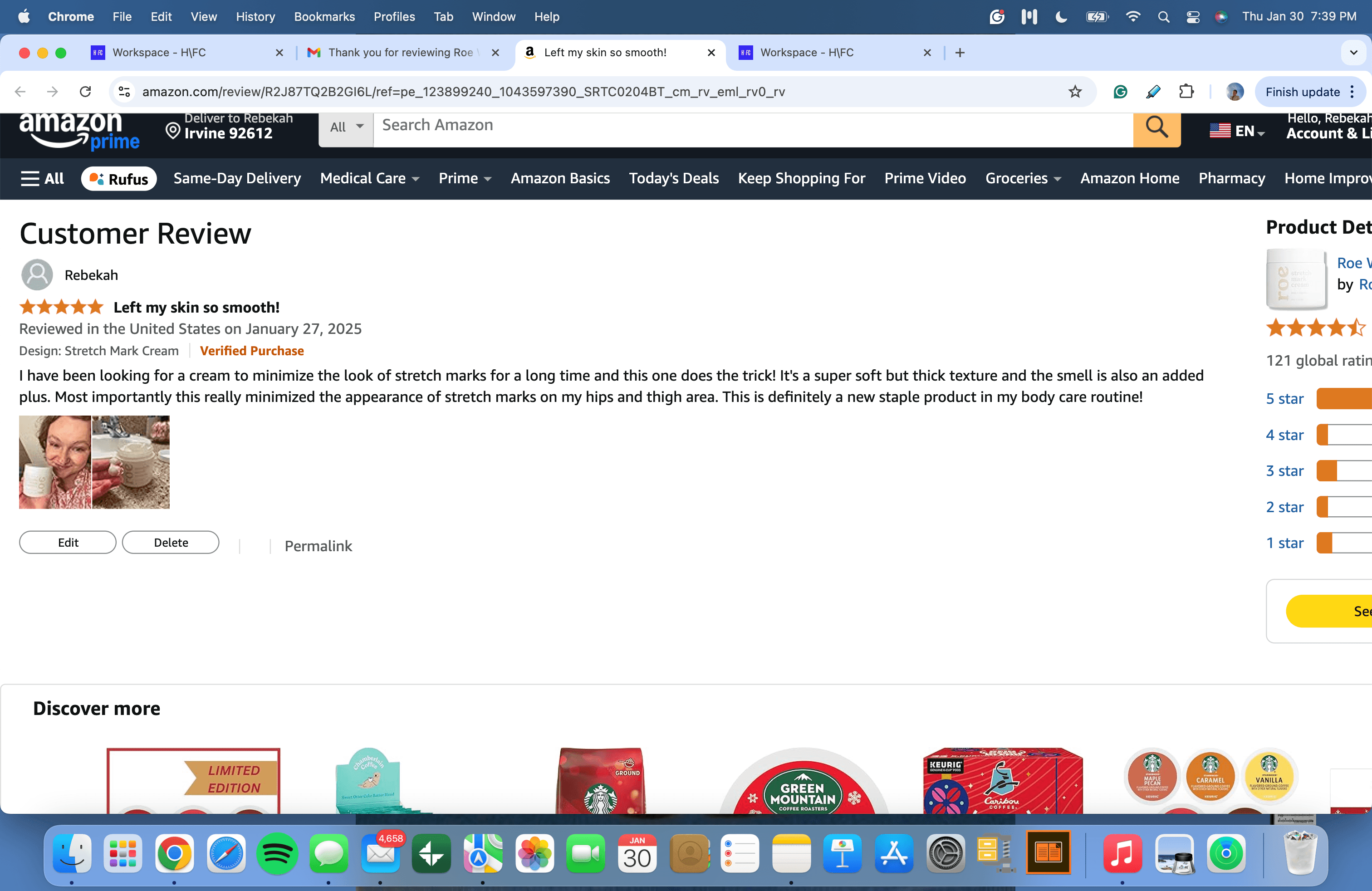 Here is a screenshot of the draft of my Amazon review.
